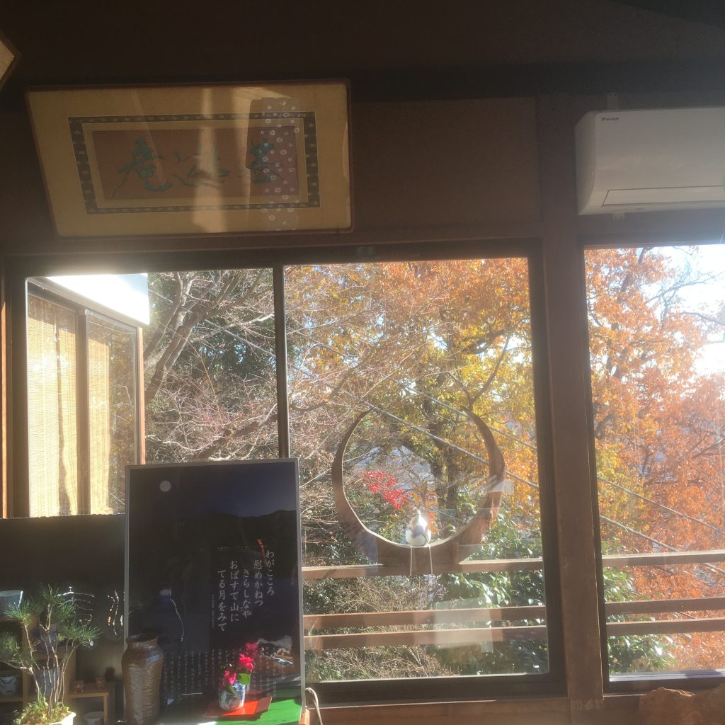 店内は古民家造りの落ち着いた雰囲気で、至る所に額縁に入った書画や年季のいった蕎麦道具などが飾られていました。店の東側と南側はガラス窓で、足利市街地の景色を楽しむことができます。これもごちそうですね(詳細は「食べログ」蕎遊庵のページの写真をご覧ください)。