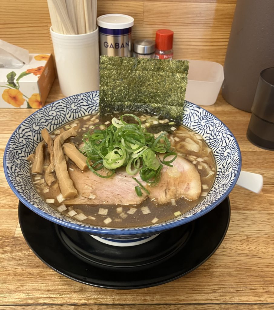 食べログを検索し、史跡足利学校のほど近く(東方5~6分の場所)に、コッテリ系ではない、高評価のラーメン店を発見。早速向かってみると、午後2時過ぎにも関わらず6人ほどが順番待ち。人気店の証でしょう。注文したのは醤油ラーメン(880円)中太のちじれ麺で、おいしかったです。この店も大盛の価格はプラス100円、足利って物価安そうでいいですね!