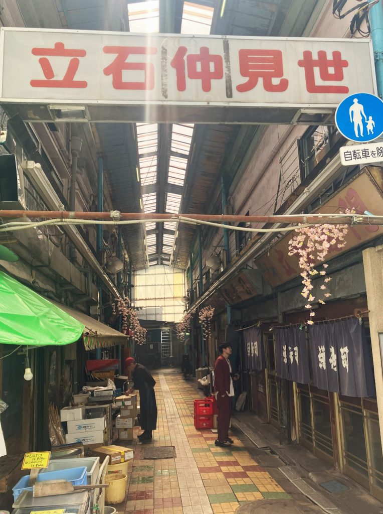 奥戸街道側から「立石仲見世」のアーチをくぐり屋根付きの商店街に入ると、店名表示の無い、シャッターが閉まったお店が並んでいました。再開発計画が立ち上がり、飲食店が軒並み廃業してしまったのかと心配になりました。