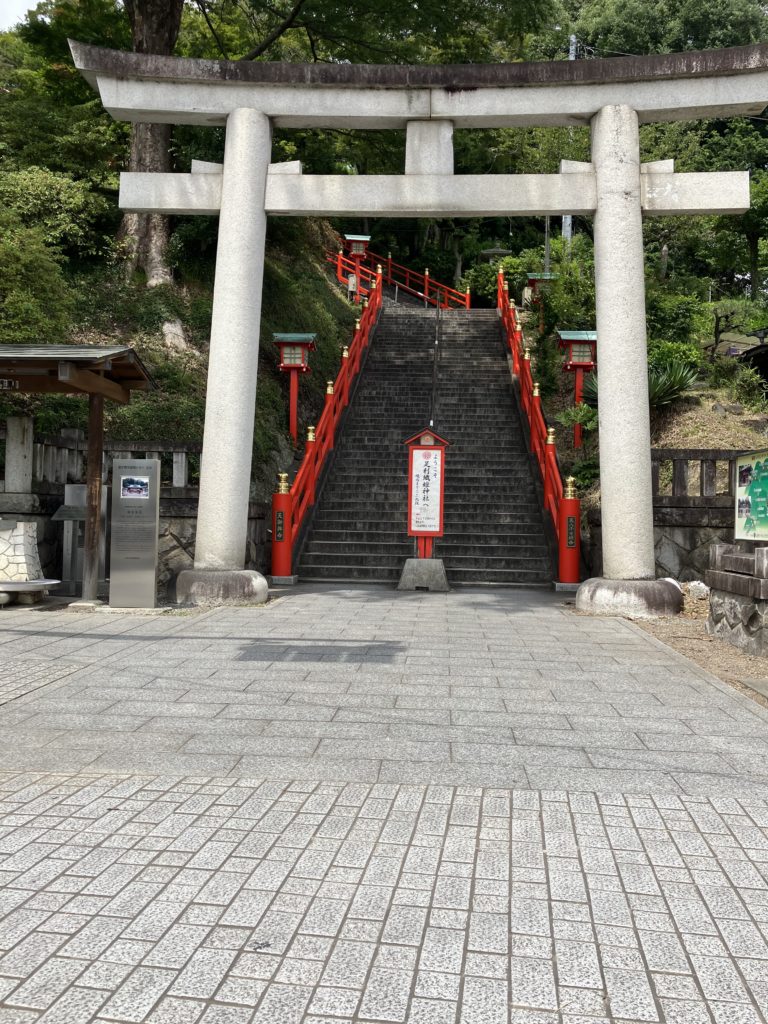 女坂登り口のおば様二人連れに「縁結びの参拝ですか?」と声をかけると、「そう見えます?」と笑顔が返ってきました。