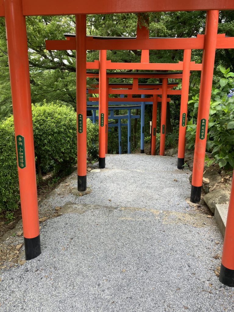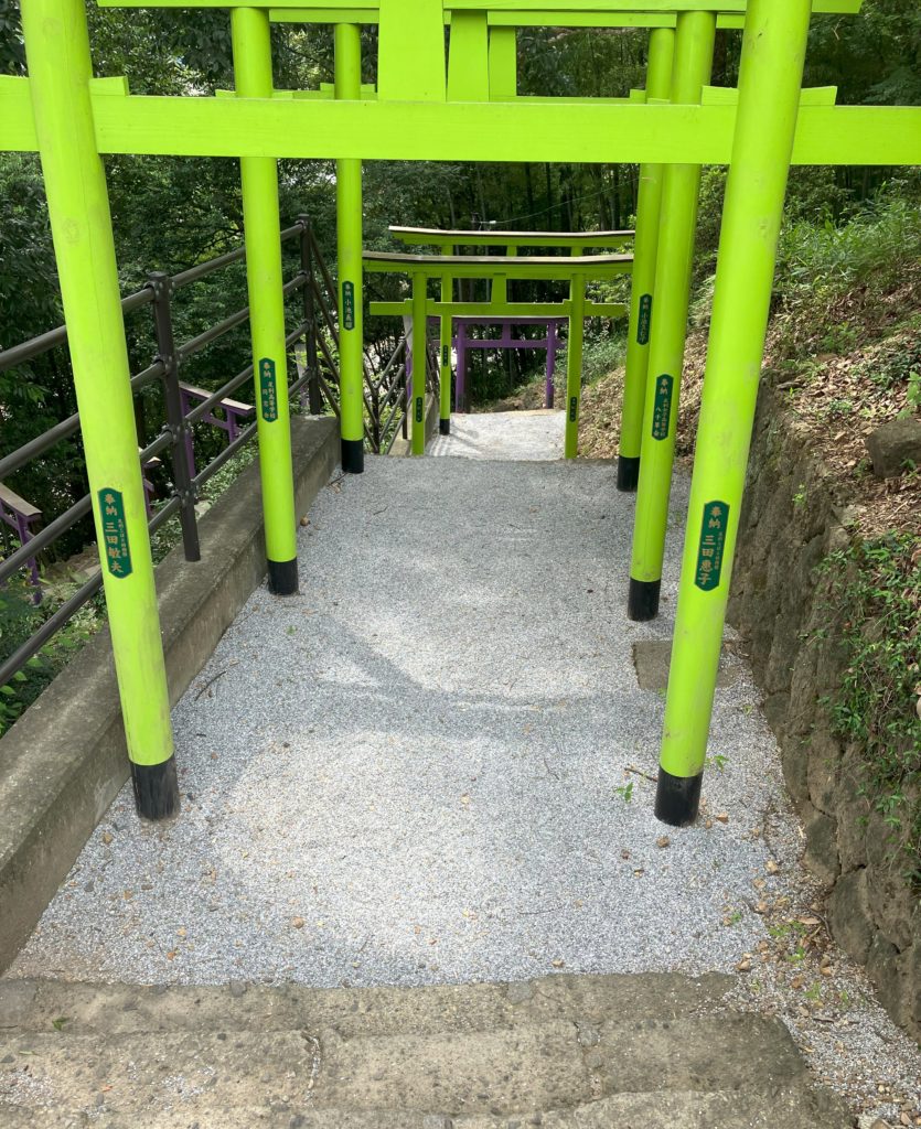 織姫山の中腹に立つ足利織姫神社には、一の鳥居から本殿へと229段の階段が続く男坂=本坂と、鳥居左側の赤、黄、緑、青、紫などの七色の鳥居が連なる女坂=縁結び坂があります。