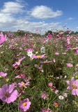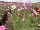 花見夏が終わり一挙に冬が近づいてきたような10月末。雨降りが続き家に閉じこもりがちな毎日、久しぶりに青空が見えたので、江戸川沿いの散策に外出。埼玉県と千葉県を結ぶ上葛飾橋の下、千葉県側の河川敷に満開のコスモス畑がありました。