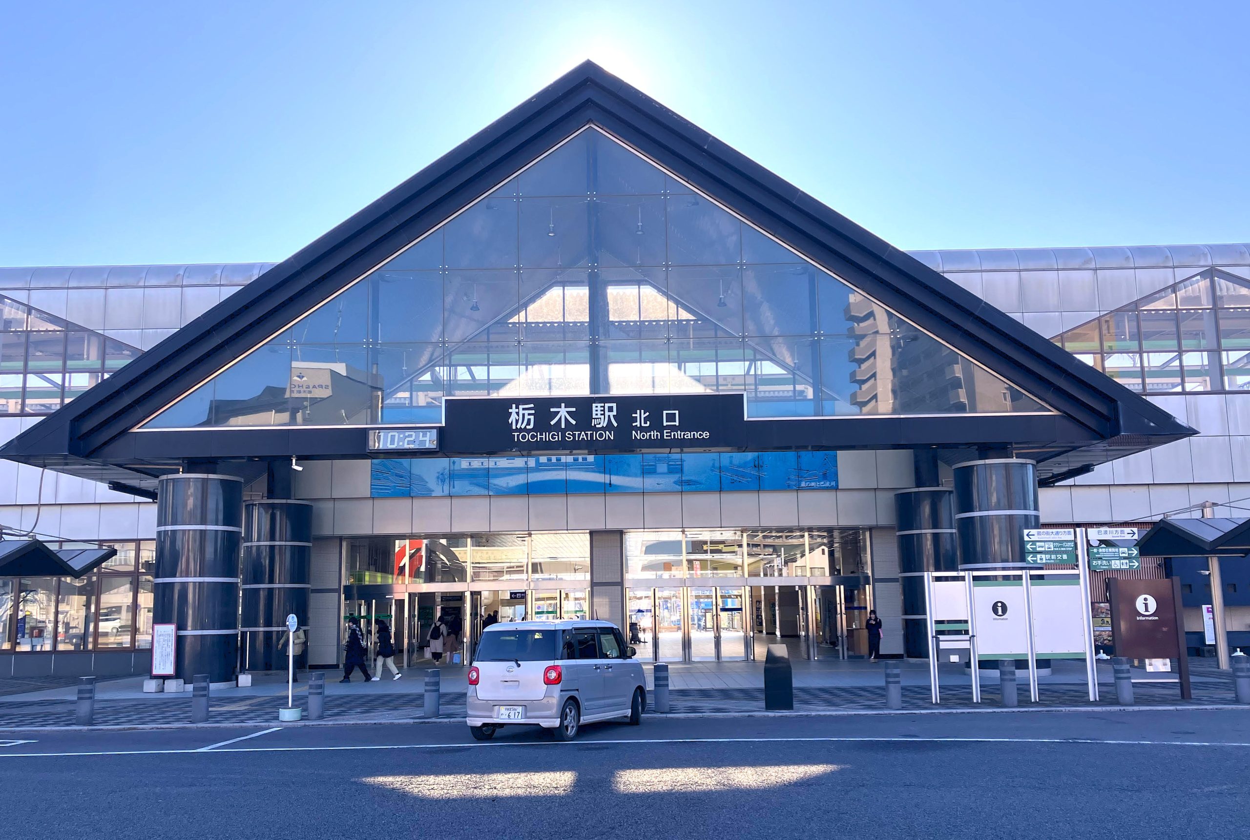 隣接するJR上毛線と東武日光線・宇都宮線の栃木駅を降りて、西口ロータリーから県道11号線、別名蔵の街大通りを北に向かうと、近代的な建物のなかに蔵の街並が続きます。