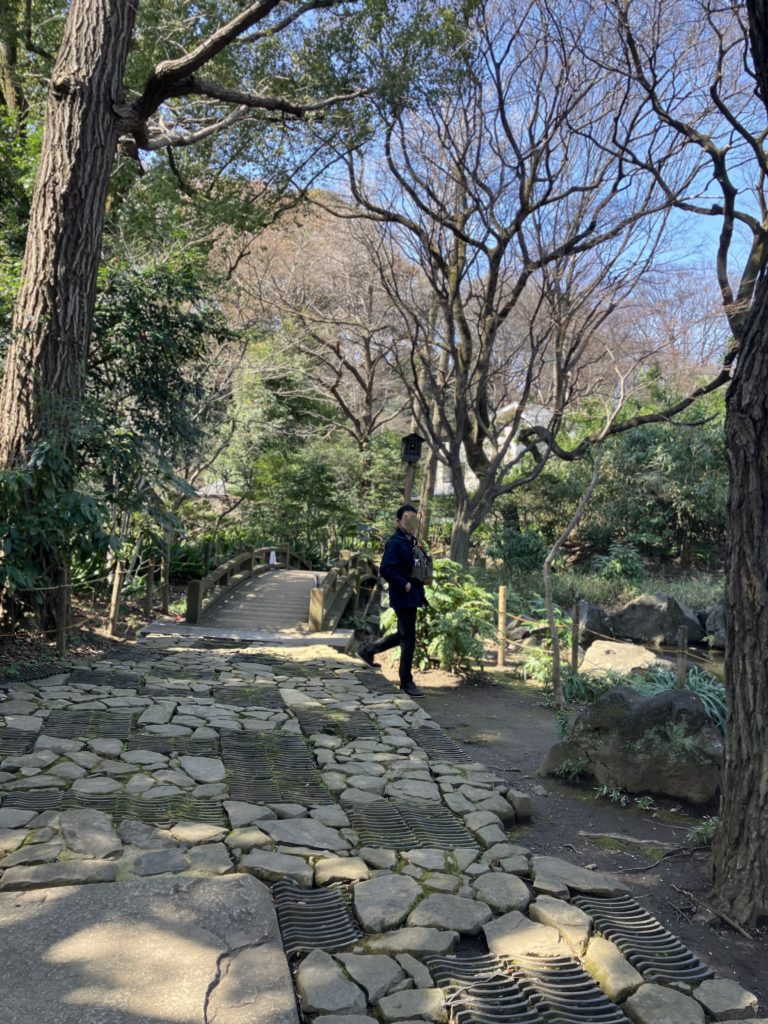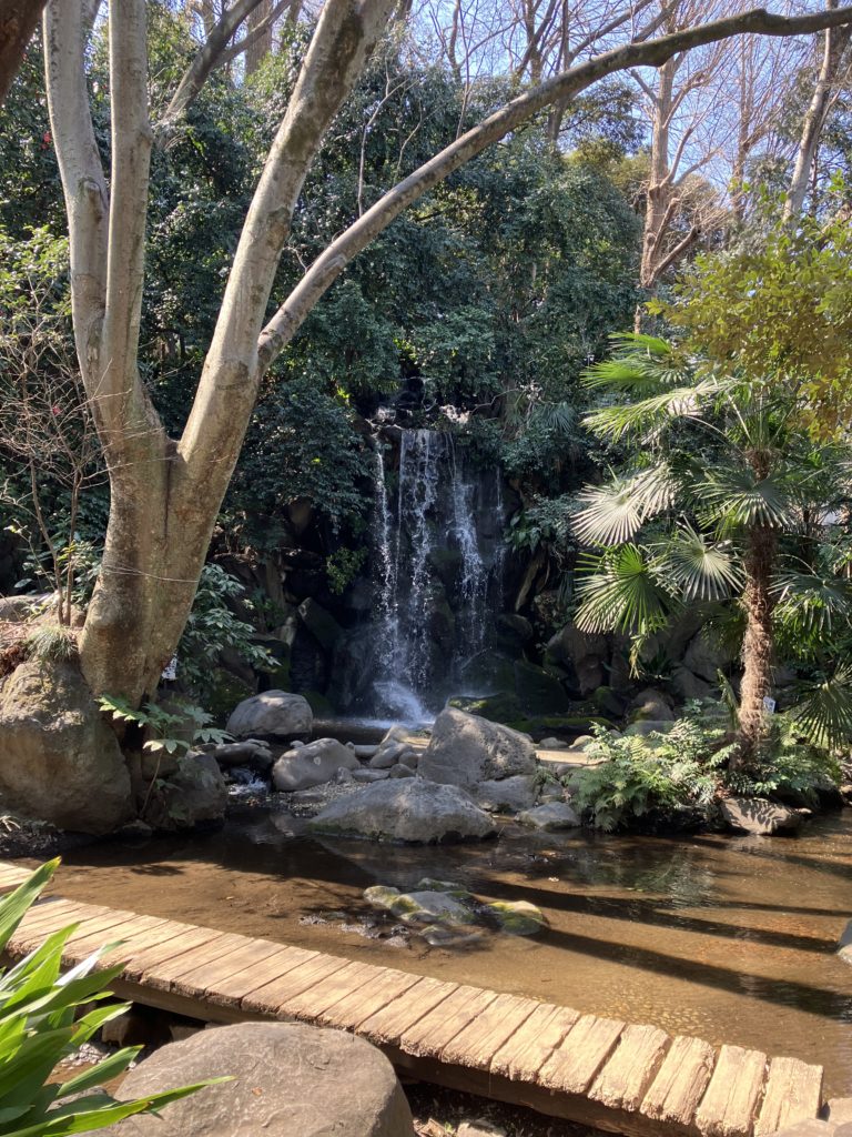 お稲荷さんを参拝した後は、北側に隣接する、江戸時代末期の王子村名主の邸宅跡地を整備した庭園を見学しました(入場無料)。敷地内は日本庭園や滝や木々の間を回遊できるよう整備されています。園内には落差8mほどある男滝(おだき)のほか、女滝(めだき)・独鈷の滝(どっこのたき)・湧玉の滝(ゆうぎょくのたき)という四つの滝があります。が、男滝以外の水は止められている、老朽化した木橋は通行止めになっている、など施設老朽化や維持経費節減の影響が出ていそうで、残念です。