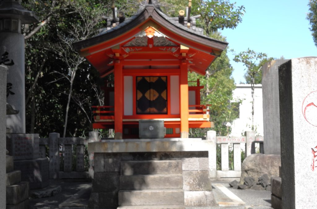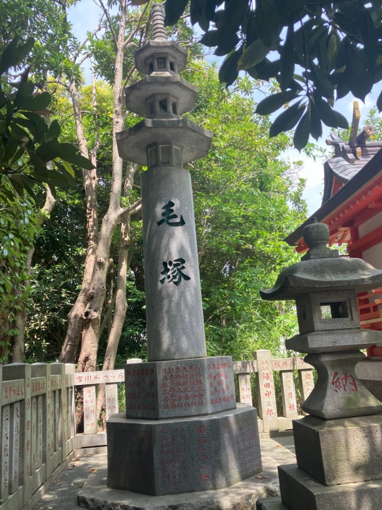 王子神社境内の駐車場奥に、「関神社」という、全国的にも珍しい理容業・美容業・かつら業から神様として信仰される「蝉丸(せみまる)」を祀った神社があります。髪の毛を供養する毛塚や大相撲の床山さんが勧進した柱石が並んでいます。髪の毛の悩みや不安を抱える人にも信仰される神社とのことで、私たちもお参りさせていただきました。