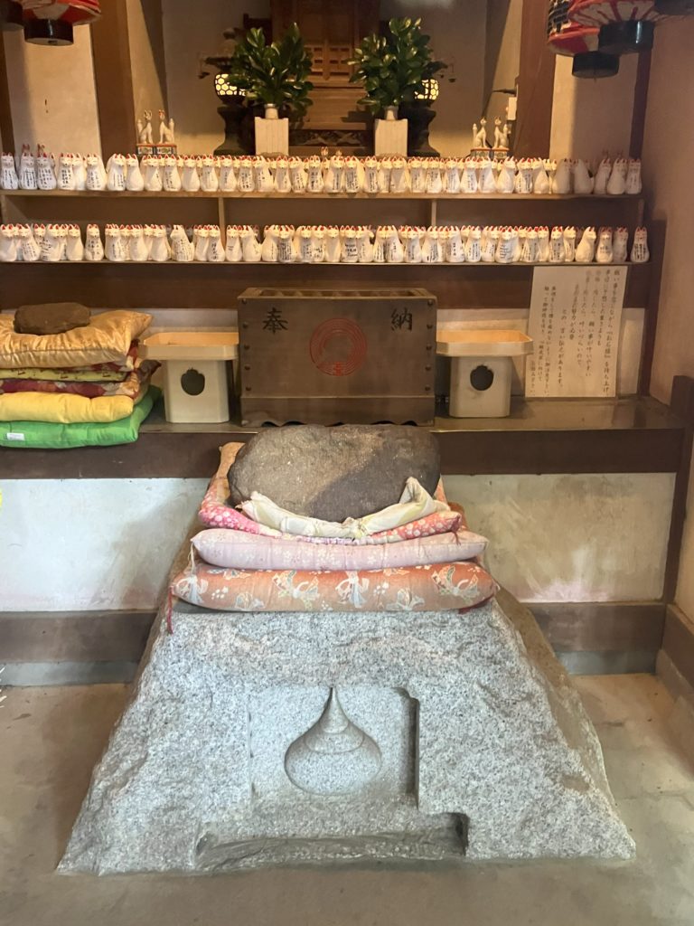 パワースポットといわれる王子稲荷神社は、急斜面の中腹に建てられた歴史を感じさせる佇まいのなか、立派な山門、社殿や落語「王子の狐」の舞台として知られるように、狛犬ならぬ狛狐が参拝客を迎えます。また持ち上げたときに予想以上に軽く感じられれば願いが叶うという「御石様」がまつられています。われわれも持上げてみましたが、私にはなんだか重かったような…。